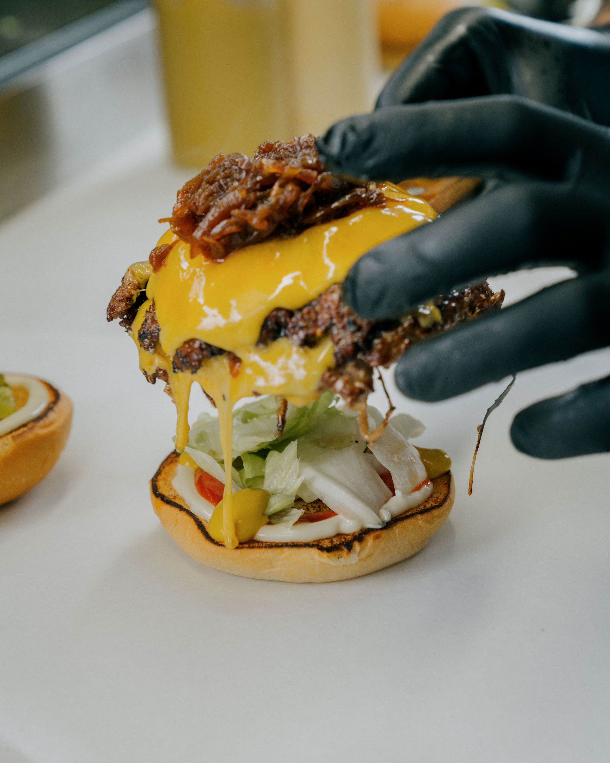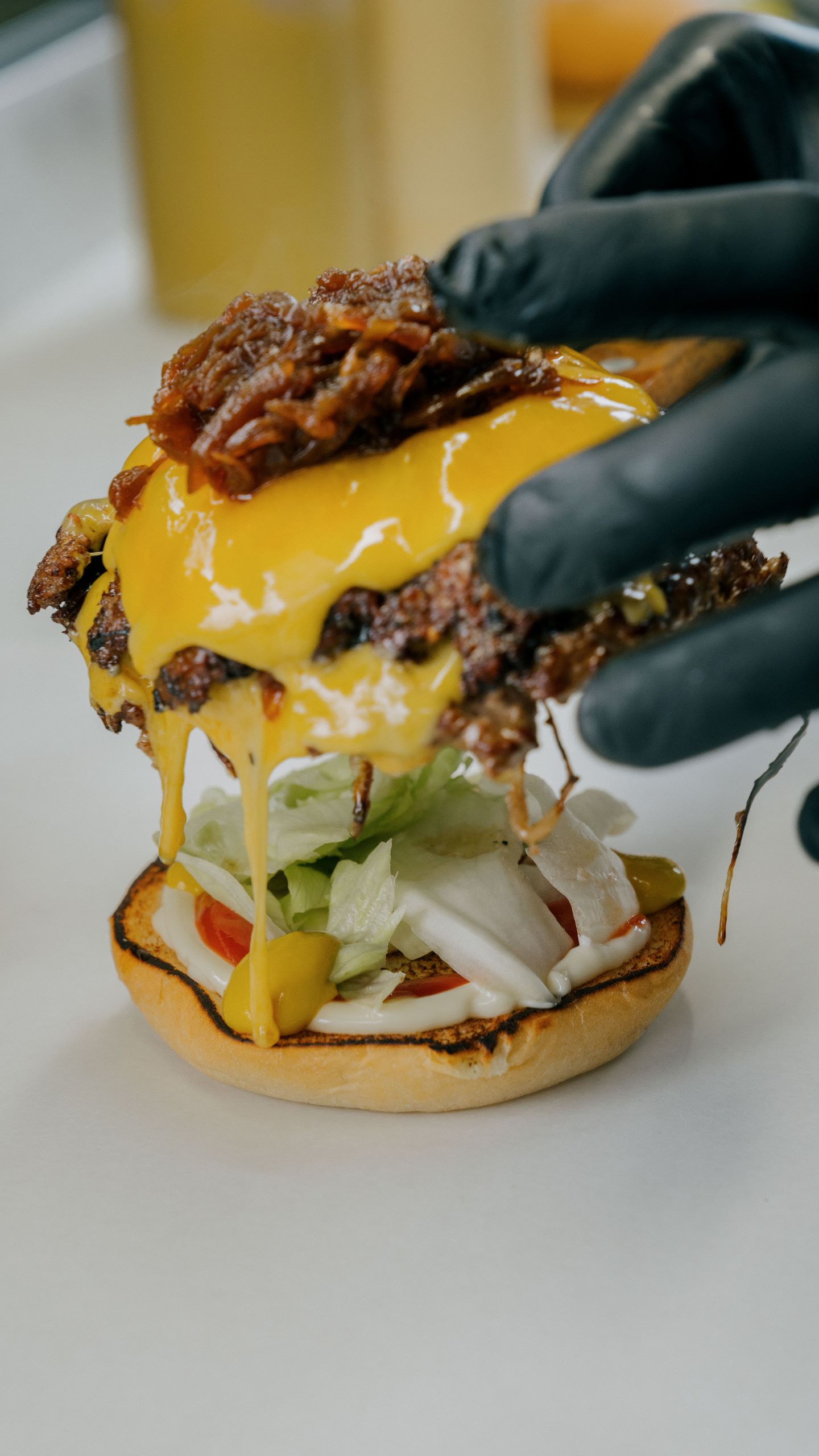 Our smash burgers are made using a custom blend of three prime beef cuts, all 100% Irish and sourced from our trusted local butcher. We use dry-aged, matured beef for maximum depth of flavor, then grind it fresh to achieve the perfect balance of tenderness, juiciness, and that signature sear when smashed hot on the griddle.