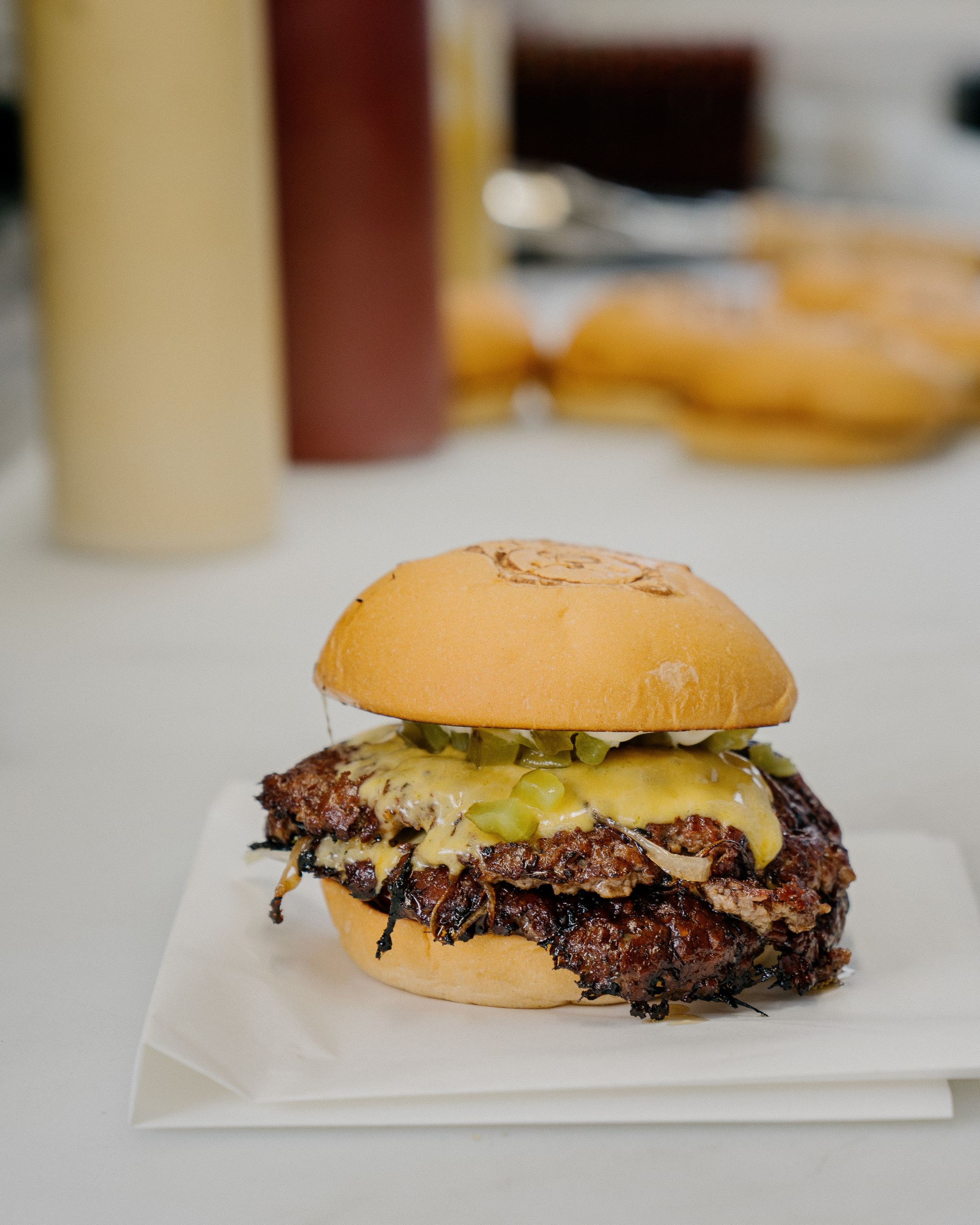 We use a classic American-style kosher pickle that delivers the perfect balance of salty and sour. Sliced thick for a satisfying crunch, it cuts through the richness of the burger and adds that bold, tangy snap every great smash burger needs.